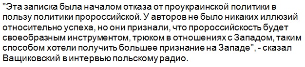 По словам нынешнего главы МИД Польши, эта записка была своего рода началом отказа от проукраинского курса ведения политики в пользу налаживания отношений с Россией.