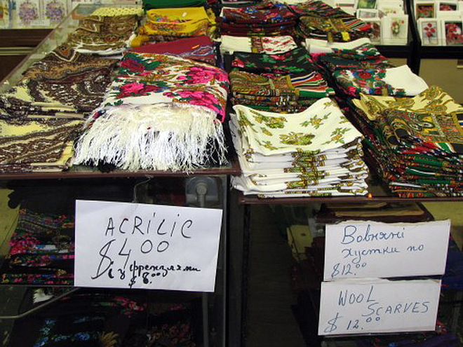 У магазинах з українськими сувенірами, можна придбати декоративний посуд, вишиванки та сувеніри. За них потрібно віддати доволі багато. Наприклад, тарілка з орнаментом може коштувати близько 580 гривень, це разів у 5 більше, ніж в Україні".