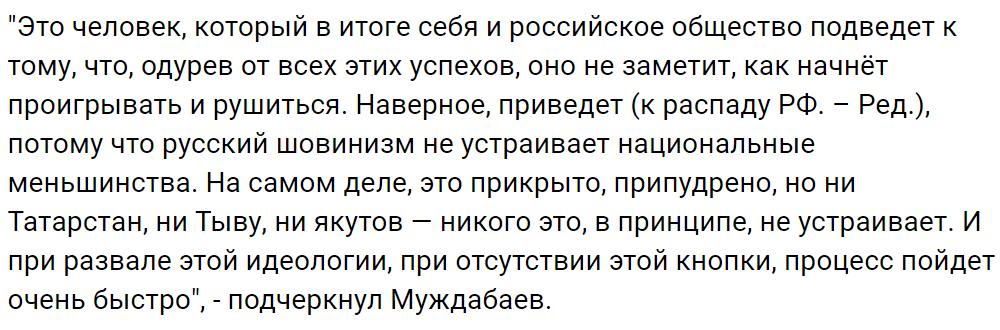 Журналист подчеркнул, что Россию в итоге разрушит сам Путин и российский народ.